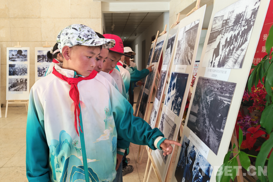 图为吉隆完全小学学生参观主题图片展 摄影:张进