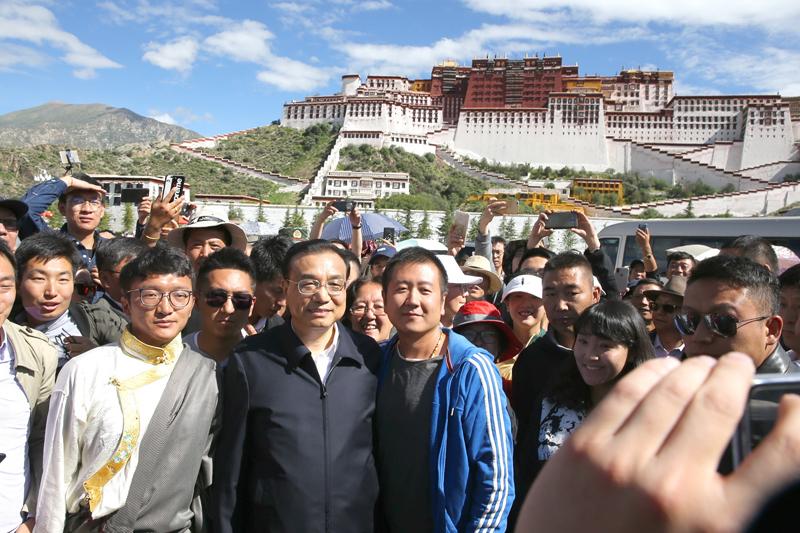 李克强来到布达拉宫广场与市民游客交流合影