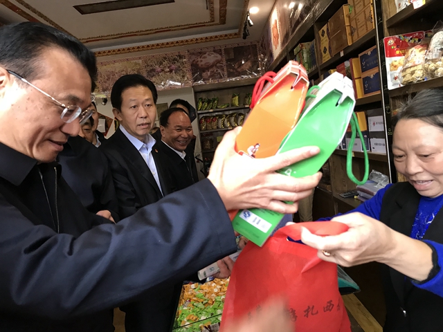 中国西藏网讯 7月26日,李克强总理在西藏林芝考察时,随机走进路边一家民族特色小店。在店里,李克强花116元购买了一盒青稞酥油茶和一盒西藏甜茶。临出门前,李克强对店主说,希望你们把更多西藏特色产品销往全国乃至世界。祝你们生意兴隆,扎西德勒!