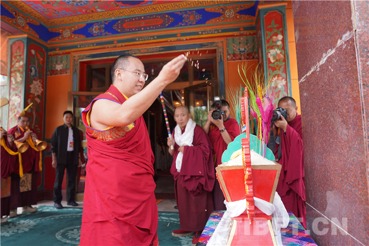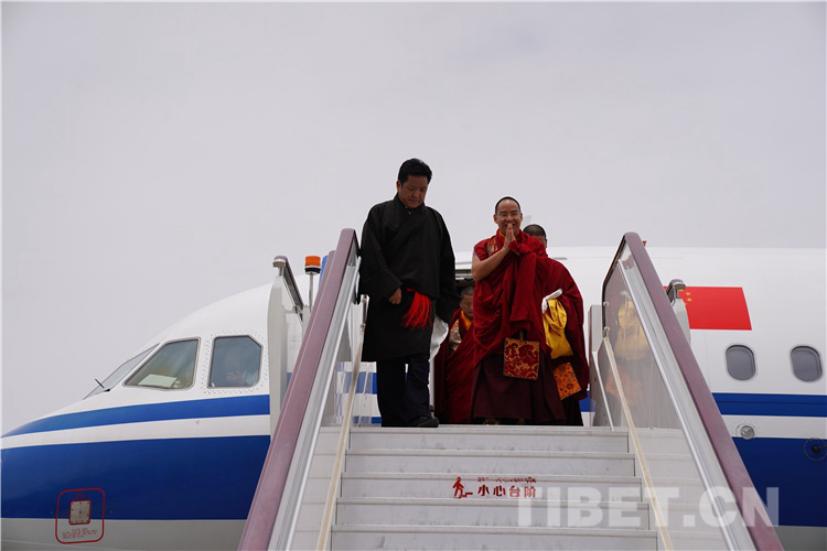 中国西藏网讯 6月的拉萨天蓝如镜、白云朵朵,沐浴在日光下的拉萨温暖和煦。6月11日,全国政协常委、中国佛教协会副会长班禅额尔德尼•确吉杰布乘机抵达拉萨。