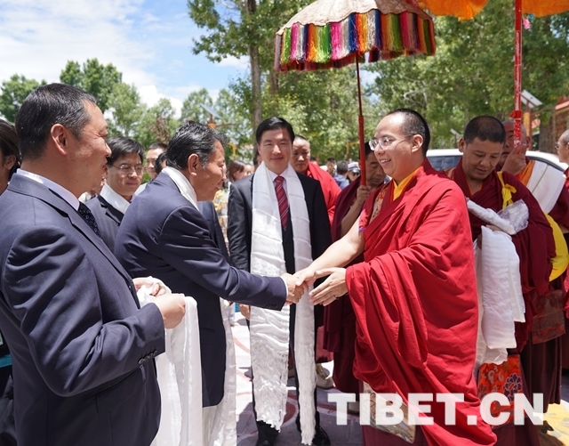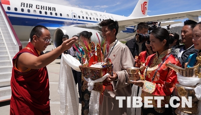 中国西藏网讯 7月17日,全国政协常委、中国佛教协会副会长班禅额尔德尼•确吉杰布乘机抵达拉萨开展考察调研、佛事活动。