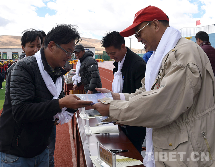 当天学校的草场上,欢歌笑语。数百名师生代表在升国旗、唱国歌仪式后,接过我和王博轩分别代表北京铁路客运段和新华社北京分社,以及北京海淀区羊坊店第五小学等单位所赠送的、包括我的拙作《圆梦“天路”》《走遍藏北无人区》在内的书籍文具。