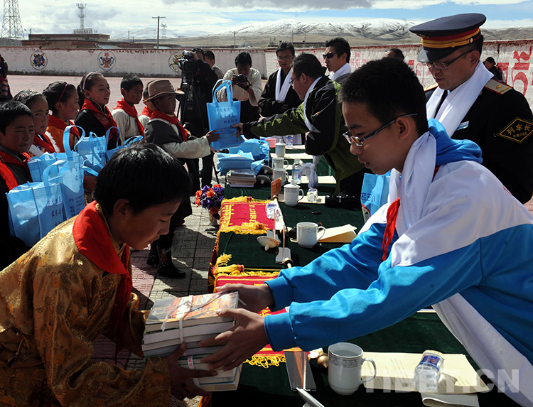 为了帮助西藏贫困地区的藏族孩子学到更多的科学文化知识,丰富他们的业余文化生活,新华社北京分社在捐赠中号召党团员积极参与,共捐藏汉文书籍1000多册,并委托我将这些书送到西藏孩子手中。