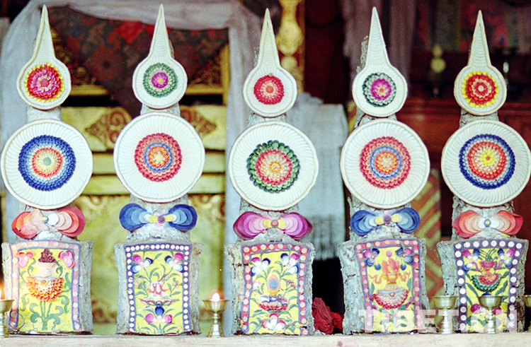 这是藏北草原一寺庙所供奉的、用酥油所雕塑的酥油花(唐召明1998年摄)