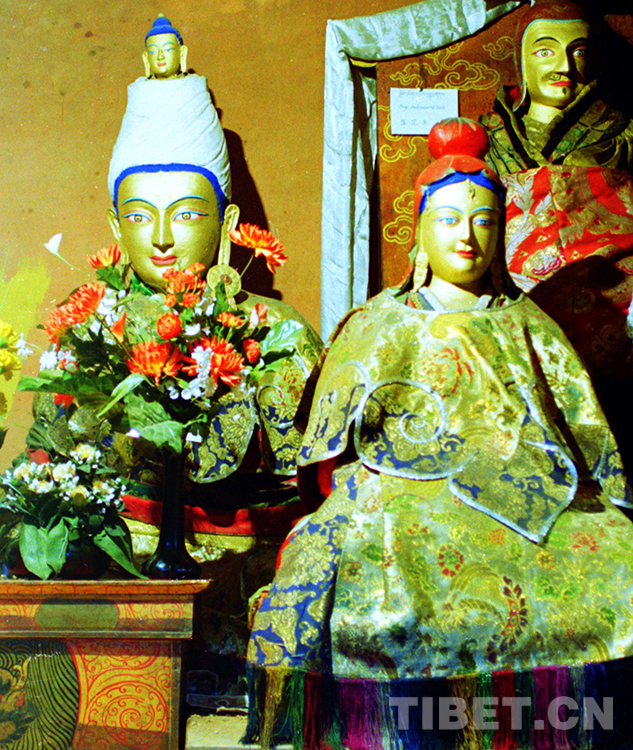 这是拉萨大昭寺供奉的松赞干布(左)和文成公主(右)的塑像(唐召明2016年6月8日摄)