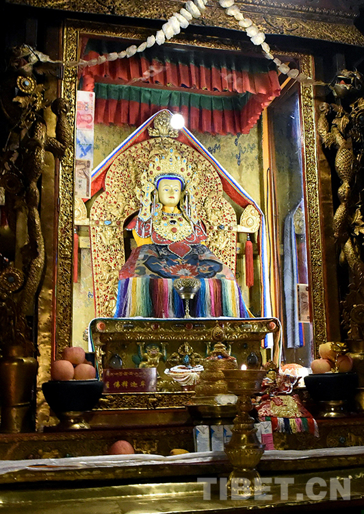 这是藏北首府那曲镇孝登寺所供奉、当年文成公主携带进藏的其中一尊释迦牟尼佛古铜像(唐召明2017年7月19日摄)