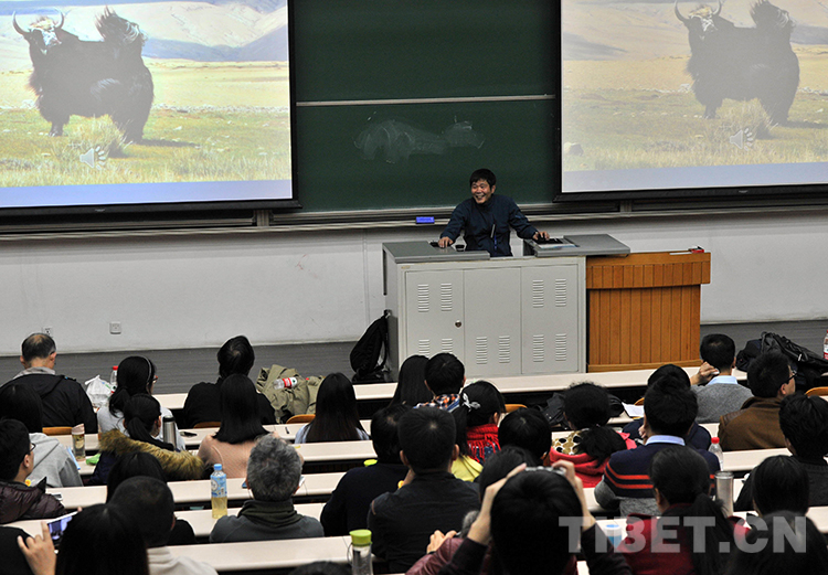 这是吴雨初在北京大学作“牦牛走进博物馆”专题讲座(唐召明2015年3月13日摄)