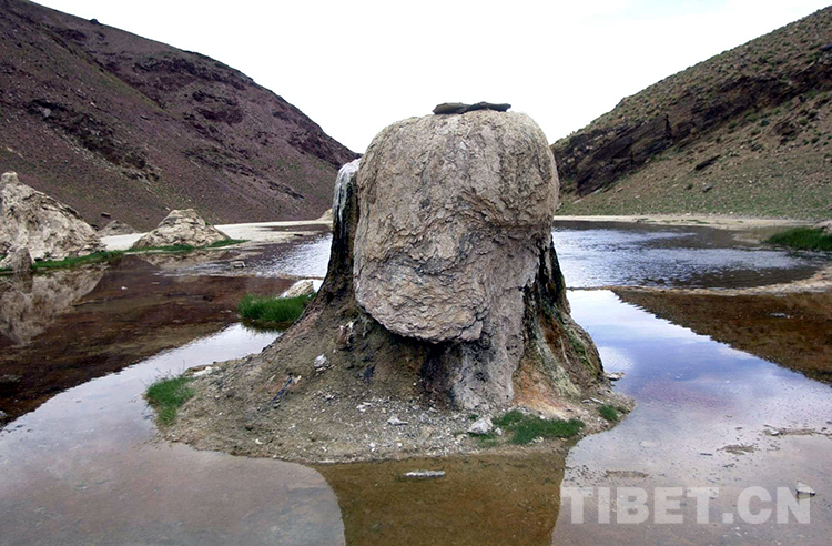 这是藏北尼玛县荣玛温泉溶岩柱景观(唐召明2001年摄)