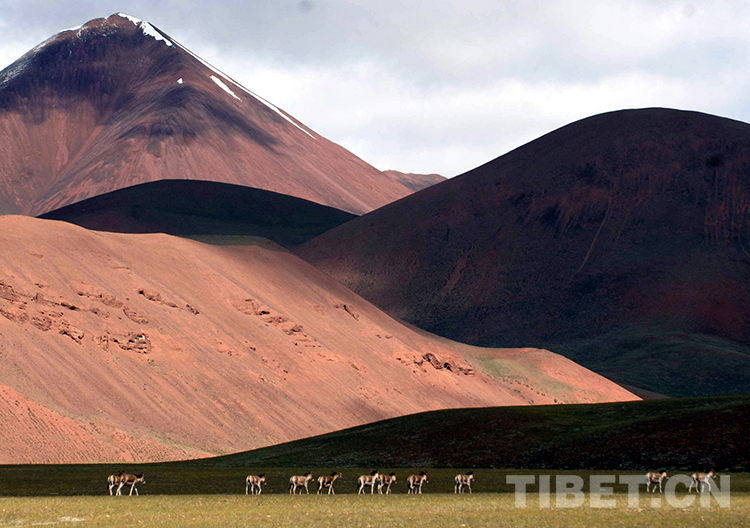 这是藏北高原的红山脉与国家一级保护动物藏野驴(唐召明2009年摄)