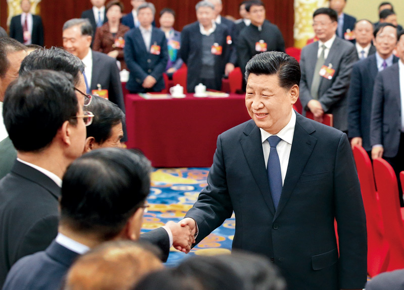 2019年3月4日下午,习近平总书记看望参加全国政协十三届二次会议的文化艺术界、社会科学界委员,并参加联组会,听取意见和建议。新华社记者 谢环驰/摄