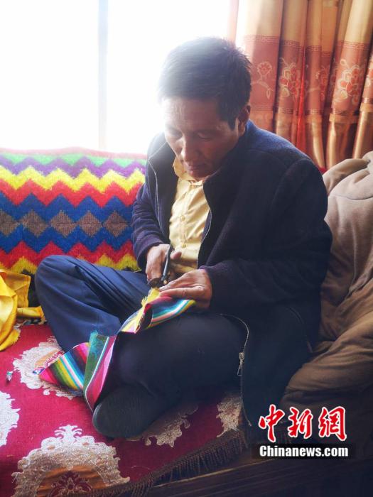 阿旺单达正在做扎扎服饰。郎朗 摄
