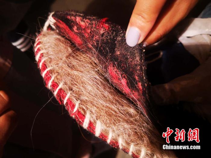 家庭的氛围耳濡目染,父母也在有意识地教他怎么做。具体什么时候开始学做扎扎服饰,他已经记不清了,只记得自己小学时候,用羊毛和牦牛毛做了第一对鞋底。