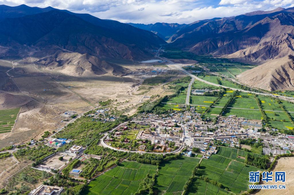 空中俯瞰山南市桑耶镇(6月2日摄,无人机照片)。新华社记者 普布扎西 摄