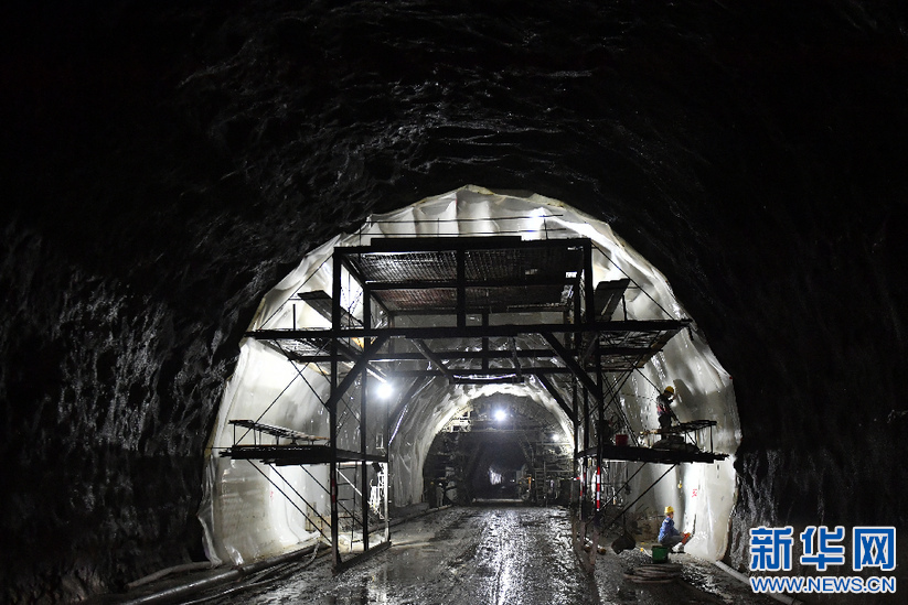 6月30日,工人在派墨公路老虎嘴隧道内进行二次衬砌施工。新华社记者 孙瑞博 摄