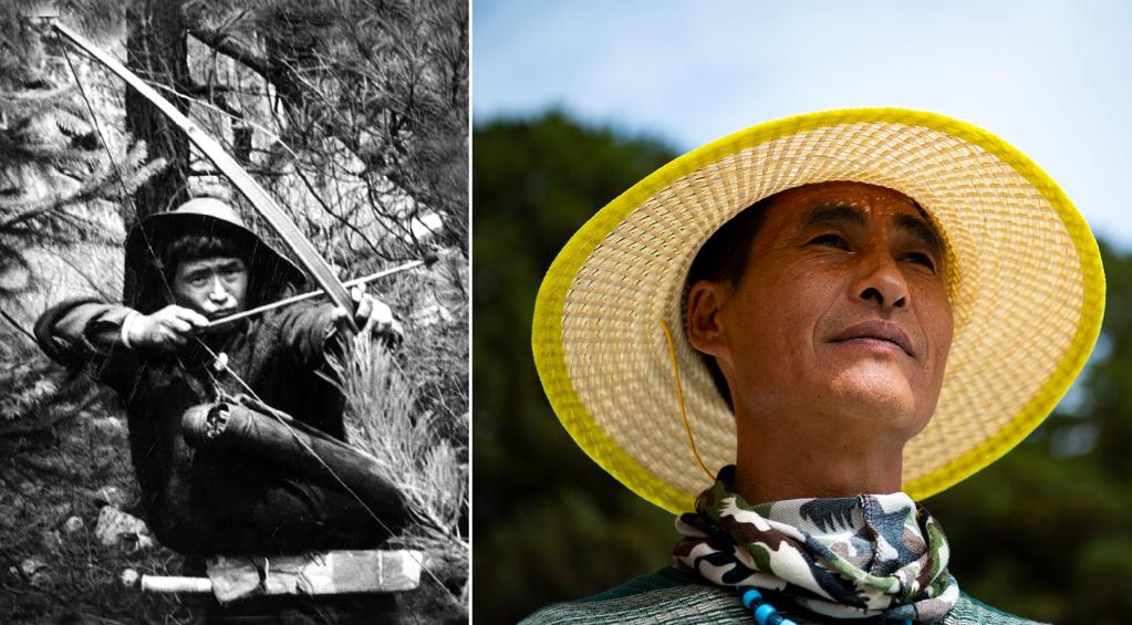 左图是20世纪50年代琼林村非常有名的猎手达前(资料照,新华社发);右图是琼林村珞巴族达吉,结束打猎生涯,成为护林员(2021年6月19日摄)。新华社记者 晋美多吉 摄