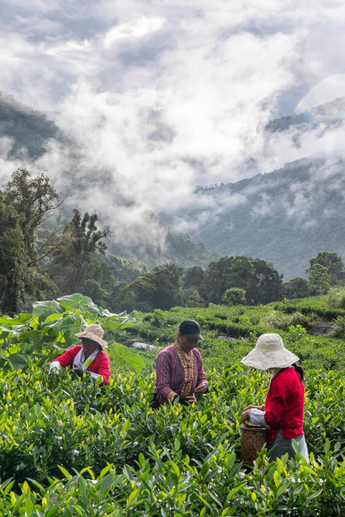 林芝市墨脱县果果塘茶场的茶农在采集茶叶(2020年9月19日摄)。新华社记者 孙非 摄