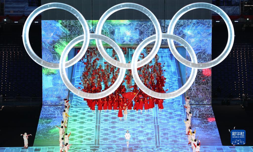 2月4日晚,第二十四届冬季奥林匹克运动会开幕式在北京国家体育场举行。这是中国代表团在开幕式上入场。新华社记者 徐子鉴 摄