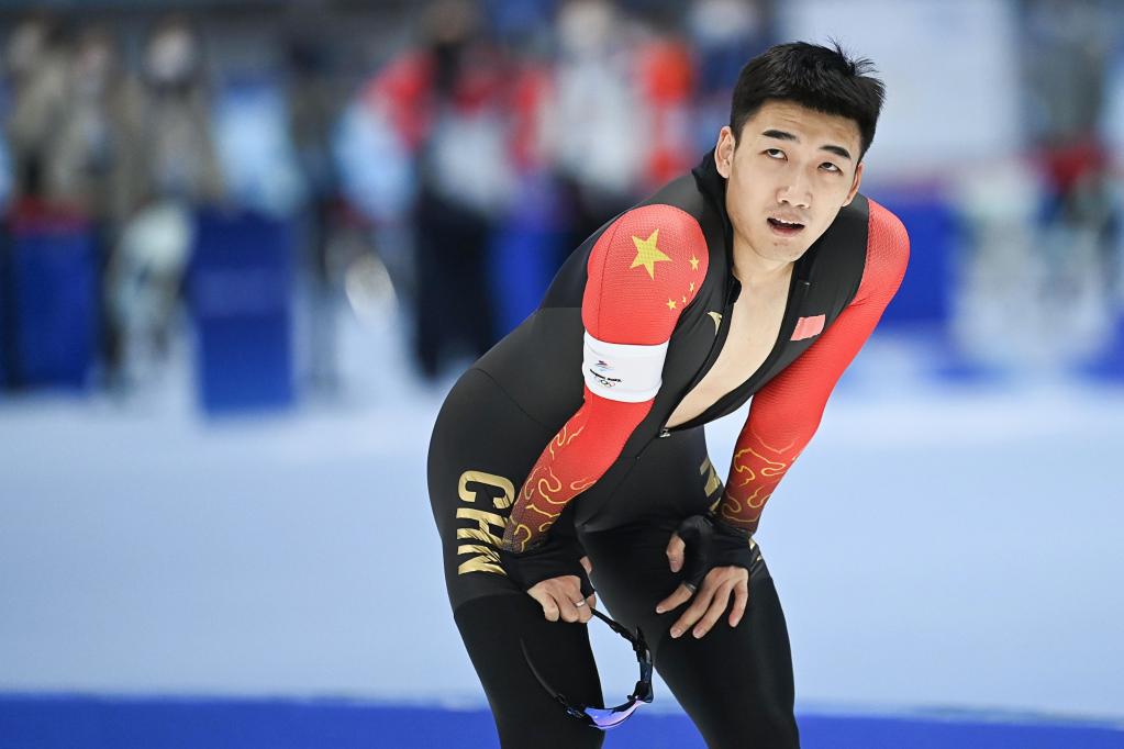 中国选手高亭宇在比赛后等待成绩。新华社记者熊琦摄
