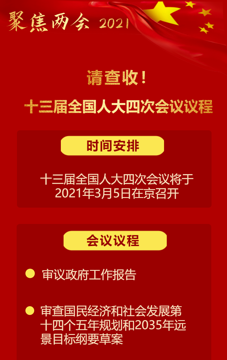 【聚焦两会 2021】请查收!十三届全国人大四次会议议程