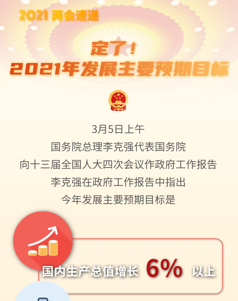 【两会速递】定了!2021年发展主要预期目标公布 国内生产总值增长6%以上
