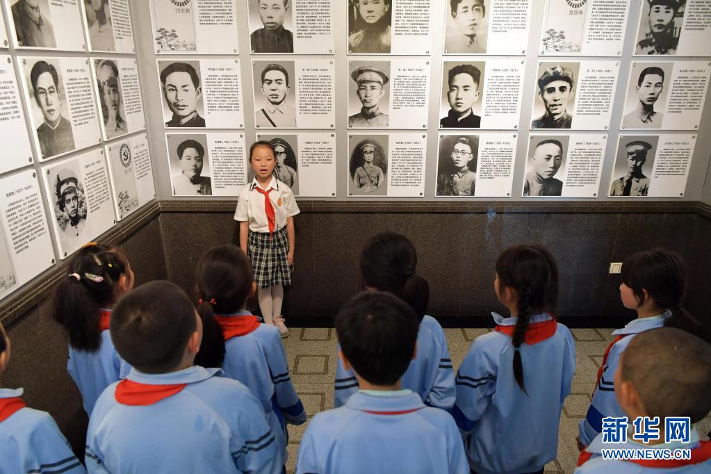 在井冈山革命烈士陵园,“小红军宣讲团”的成员周煜菡给前来参观研学的学生们进行义务讲解(5月12日摄)。新华社记者 彭昭之 摄