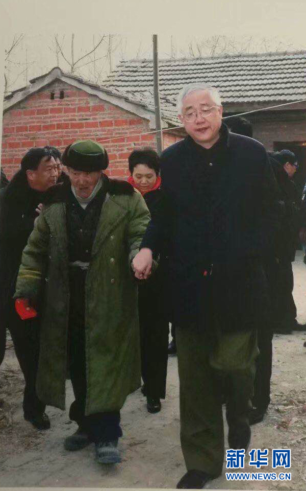 时任安徽省政协副主席的李宏塔(前右)在安徽阜阳市颍东区插花镇慰问困难群众(2011年1月14日摄)。新华社发