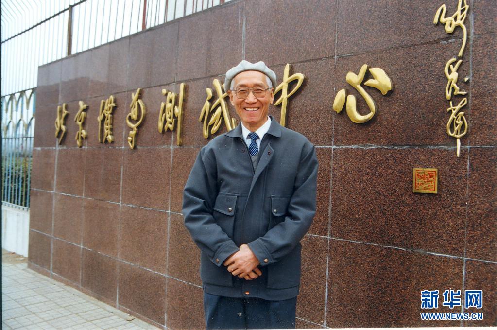 上世纪90年代,陆元九在北京惯导测试中心调研时在门前留影。新华社发(中国航天科技集团供图)