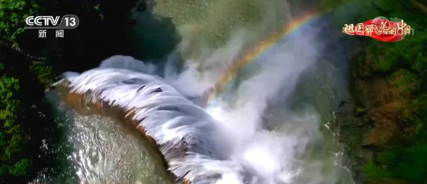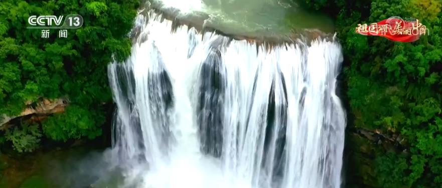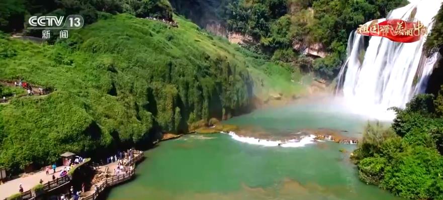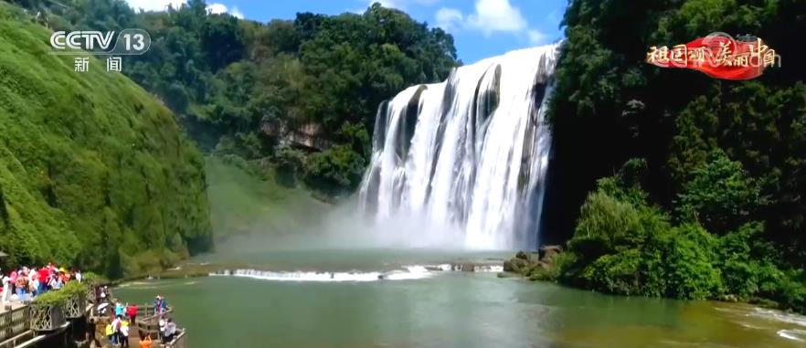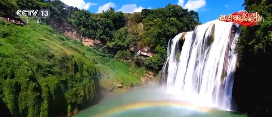 这里是位于贵州安顺市的黄果树瀑布。整个瀑布高度为77.8米,宽101米,河水从断崖顶端凌空飞流而下,气势磅礴。春、夏、秋、冬,每个季节这里都有着不一样的形态。奔腾而下的河水犹如一张流动的大白布,瀑布激起的水花如雨雾般腾空而上,随风飘散。