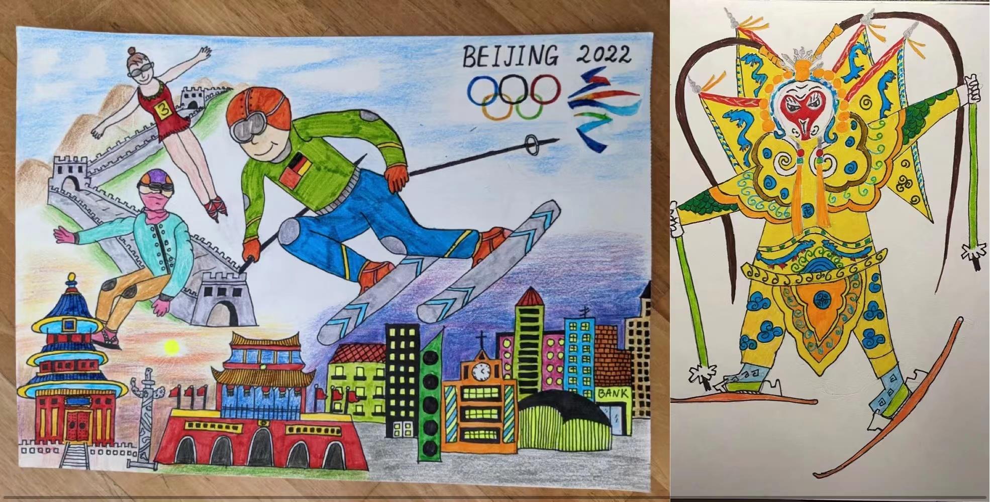 同学们在绘画作品上写满了“Beijing 2022”“我爱中国”“中国是伟大的国家”“中加手拉手”,表达了他们对北京冬奥会最真挚美好的祝福。