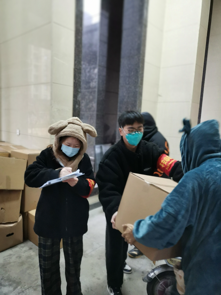 传递温暖,凝聚起更强大的力量。今年19岁的傅杭婷是大一新生,她主动报名志愿者岗位。“隔离疫情风险,但隔离不了温暖。这几天杭州时常有雨雪,居民会给我们送暖宝宝;手提物资太累,居民又把推车和三轮车送了过来。”她说。
