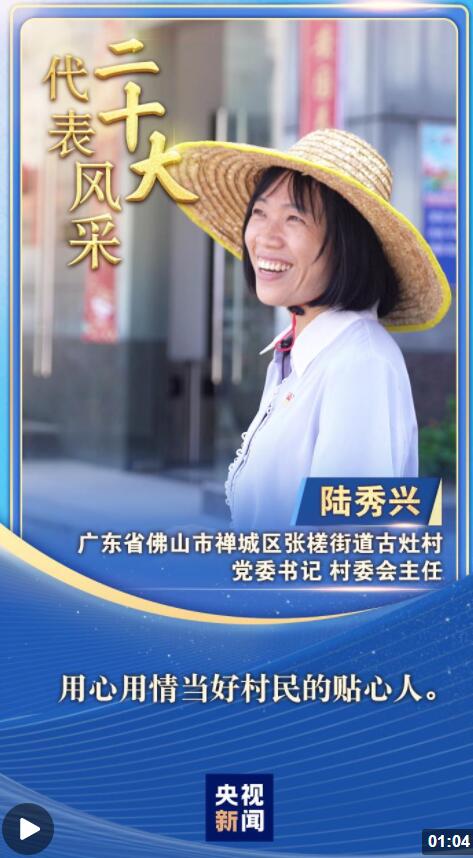 “二十大代表风采”一起来认识广东省佛山市古灶村党委书记、村委会主任陆秀兴。