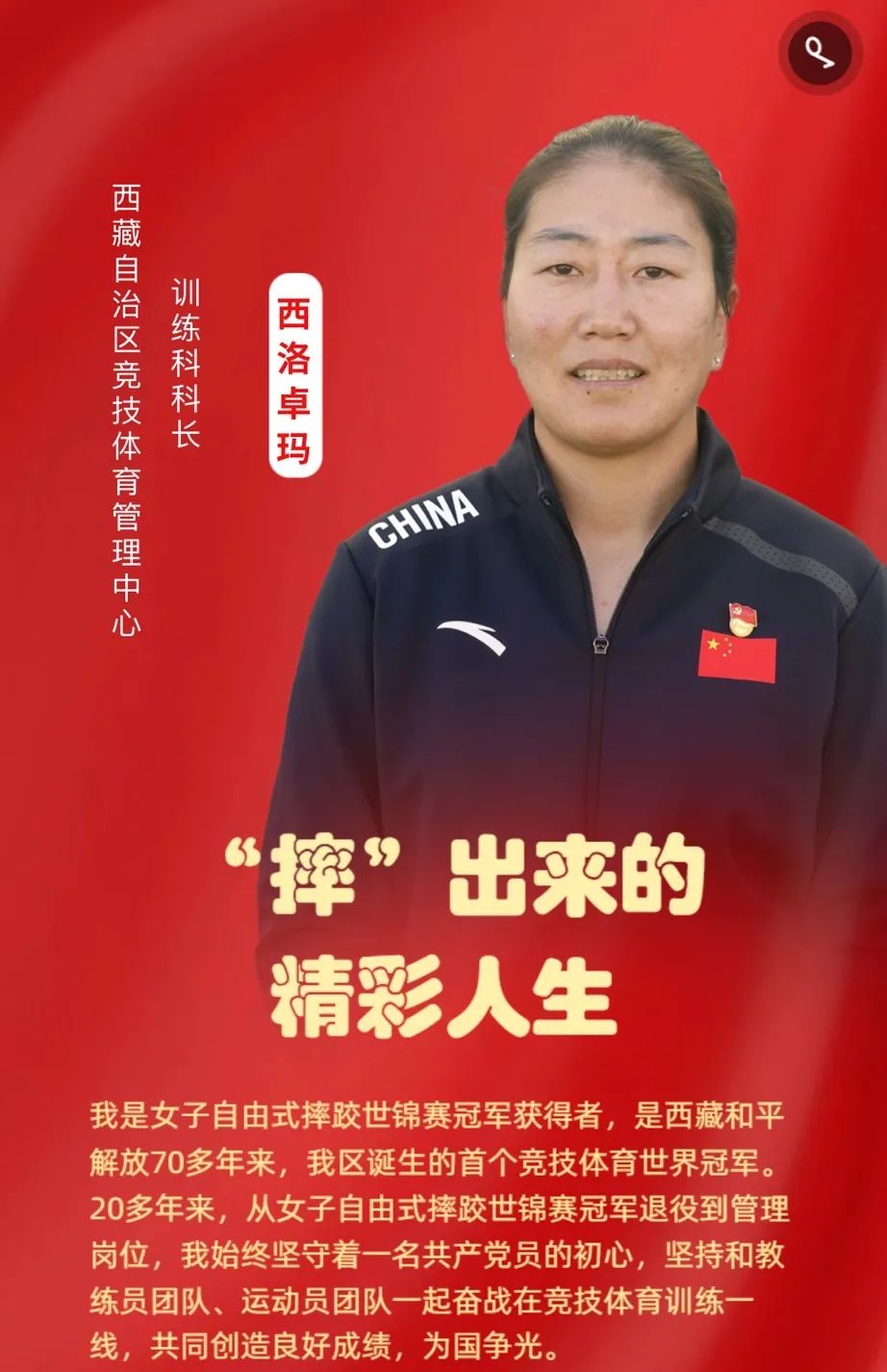 她是摔跤名将,是西藏和平解放70多年来,西藏诞生的首个竞技体育世界冠军。20多年来,从女子自由式摔跤世锦赛冠军退役到管理岗位,她始终坚守着一名共产党员的初心,坚持和教练员团队、运动员团队一起奋战在竞技体育训练一线,共同创造良好成绩,为国争光。