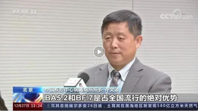 从12月初至今,中国疾控中心通过抽样调查,完成了1142个病例的全基因组测序,发现奥密克戎变异株亚分支BA.5.2和BF.7占全国流行的绝对优势,两者合计超过80%。此外,还有7个奥密克戎变异株亚分支也在流行。