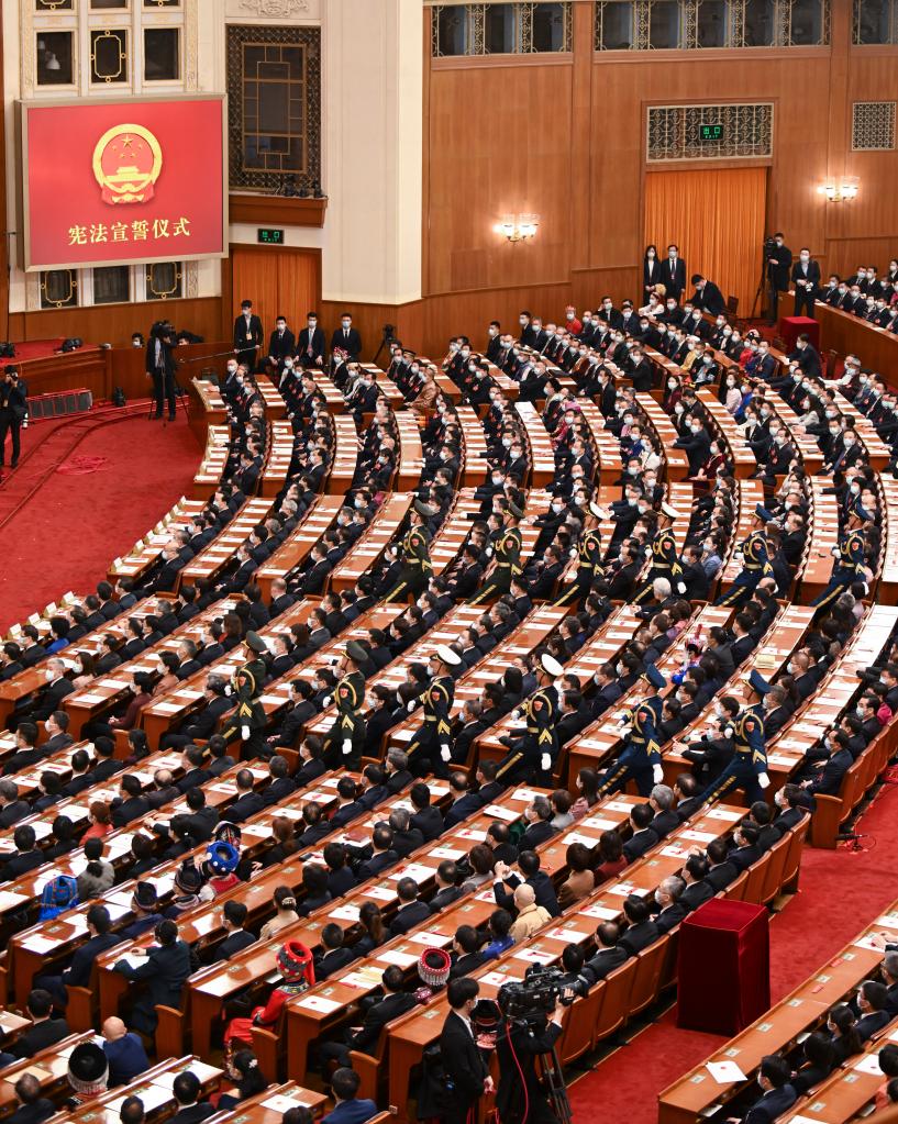 3月10日,中华人民共和国第十四届全国人民代表大会第一次会议宪法宣誓仪式在北京人民大会堂举行。 新华社记者 金皓原 摄