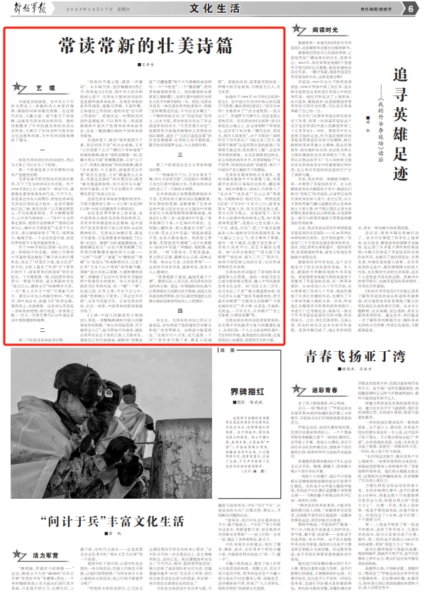 毛泽东同志的诗词是常读常新的。在实现中华民族伟大复兴的漫漫征途上,在我们每一个人人生的各种际遇中,无论何时何地,重读他的壮丽诗篇,总能获得会心的感悟,汲取到无穷的力量。