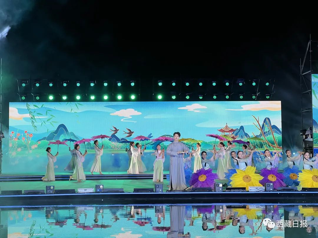活动在文艺演出《雪顿新韵》中拉开序幕,绚丽的灯光、精彩的文艺演出,为观众带来了一场精美的视觉盛宴。开幕式由序篇、上篇、下篇、尾声四个章节组成,整场文艺演出融合歌曲、舞蹈、藏戏、京剧、昆曲、街舞等元素,并以半实景的舞台艺术形式上演《百年雪顿》等节目,在线上线下呈现一台传统与现代交相辉映、传承与创新和谐相融、历史与未来一脉相承的文艺盛宴。