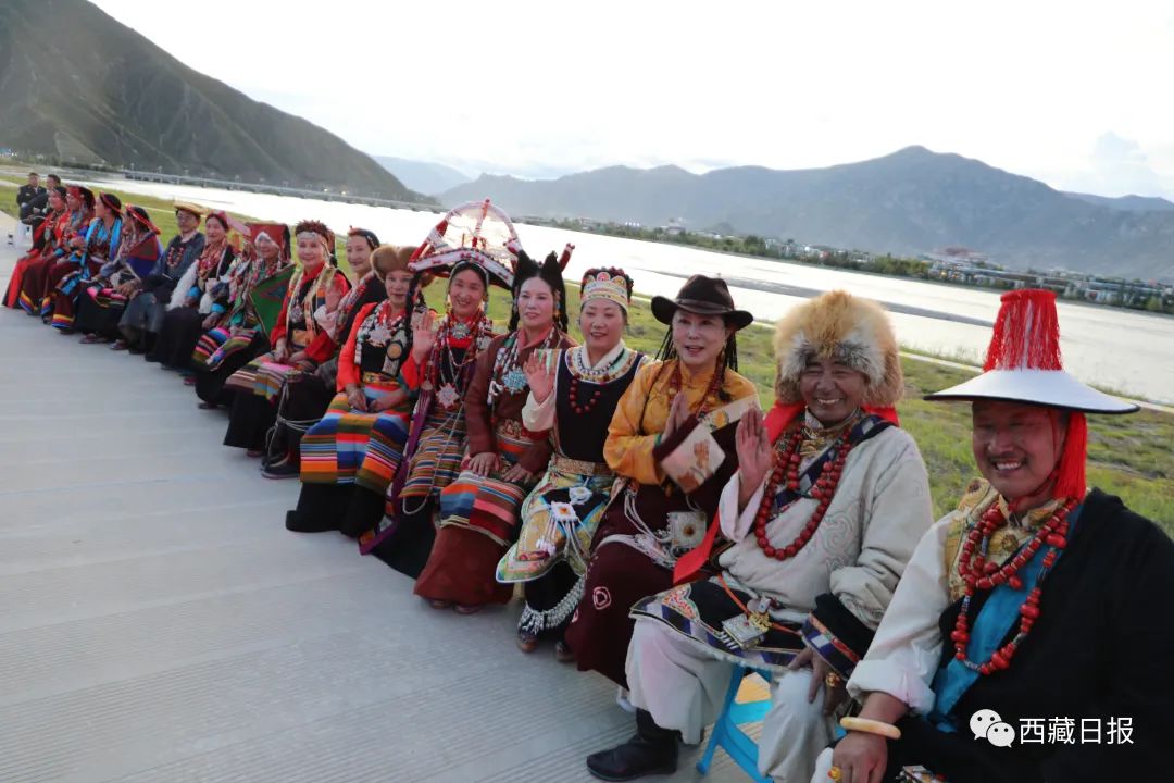 图为2023年拉萨雪顿节开幕式分会场上,《藏装秀》的表演者。记者 格桑伦珠 摄
