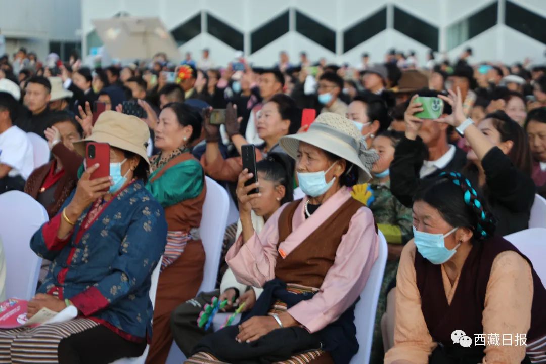 2023年拉萨雪顿节开幕式上,市民用手机记录精彩节目。记者 格桑伦珠 摄