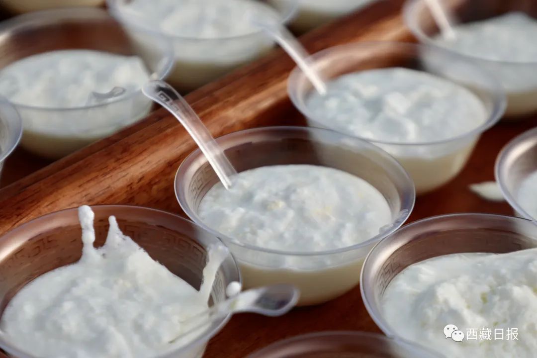 2023年拉萨雪顿节开幕式分会场上,为拉萨市民准备的酸奶。记者 格桑伦珠 摄