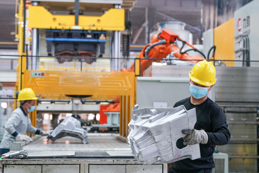 11月7日,在安徽省马鞍山市含山县辉晗精密机械有限公司,工人在压铸生产线上工作。新华社记者 刘军喜
