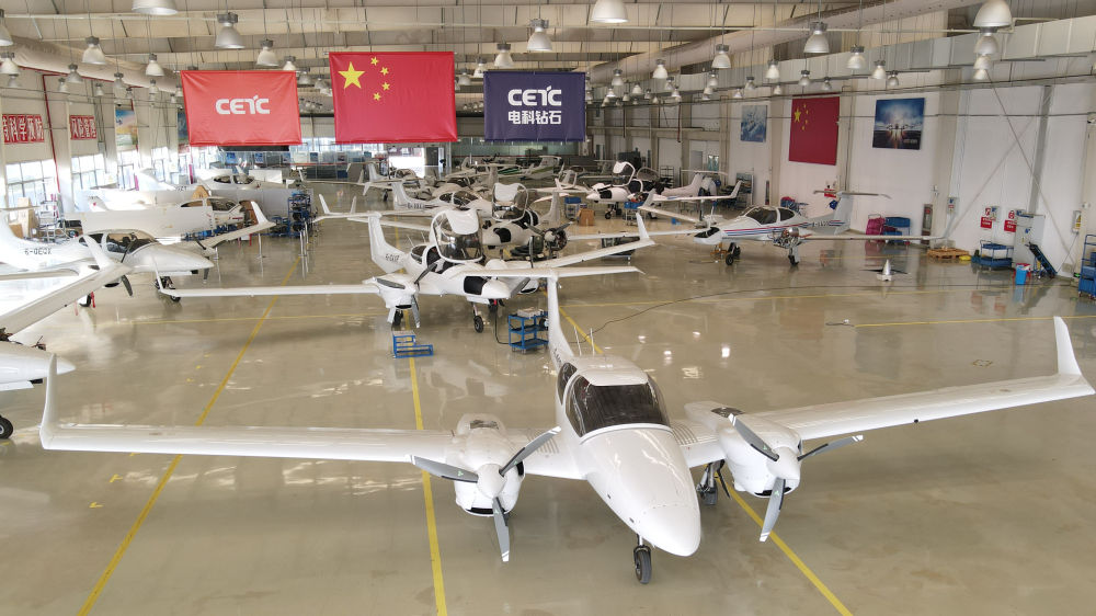 芜湖市湾沚区中电科芜湖钻石飞机制造有限公司预装车间内,用高端复合材料制作的机身、机翼部分,正被运至总装车间,企业主营通用飞机研发生产制造以及通用航空产业运营服务等业务。