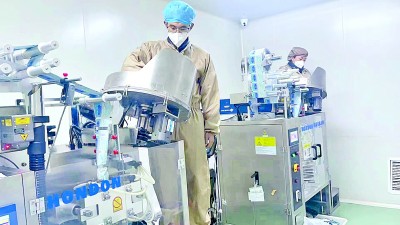 西藏甘露藏药股份有限公司藏药生产车间内,工人在忙碌。次仁拉姆摄/光明图片