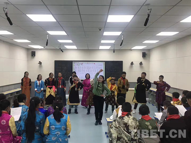 图为杨玲(前中)在给同学们上课 杨玲供图