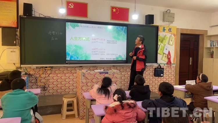 图为2022年4月10日,韩军峰为革吉县完全小学毕业班的同学们上主题班会