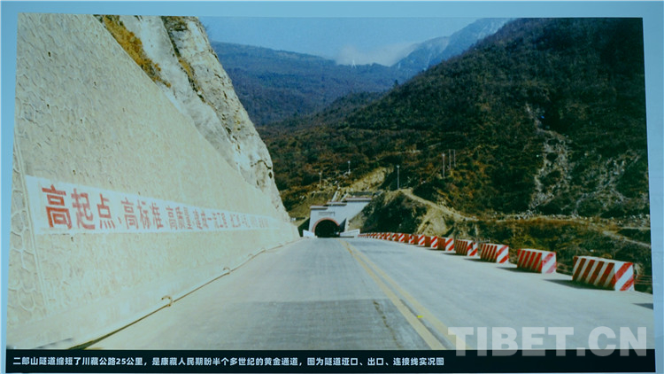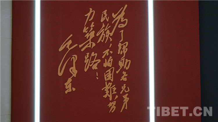 馆内序厅播放着雅康高速公路的宣传片,两侧展板上展示的是毛主席关于修建“两路”的重要批示,包括1952年8月为康藏公路开工题词,和1954年12月为庆贺康藏、青藏公路通车题词。