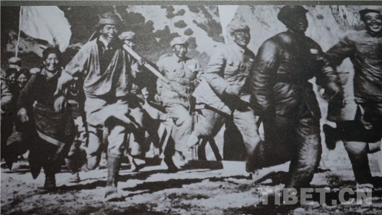 图为川藏公路巴河桥梁架通后的欢呼场面老照片 翻拍:张宇