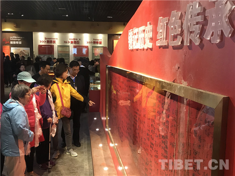 图为十八军老战士及十八军后代一行在甘孜县朱德总司令和五世格达活佛纪念馆内参观。摄影:龙真多吉