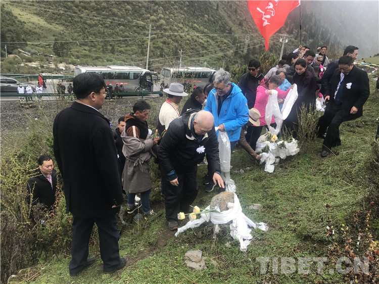 图为十八军老战士及十八军后代一行向9名十八军无名女兵墓敬献哈达。摄影:龙真多吉(中国西藏网 记者/龙真多吉)