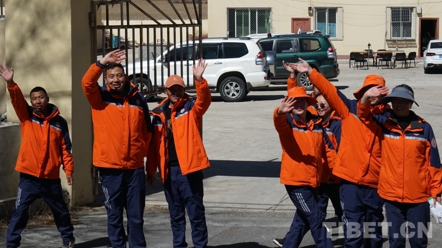 图为临行前,养护职工们向川藏线采访组挥手致意 摄影:张宇