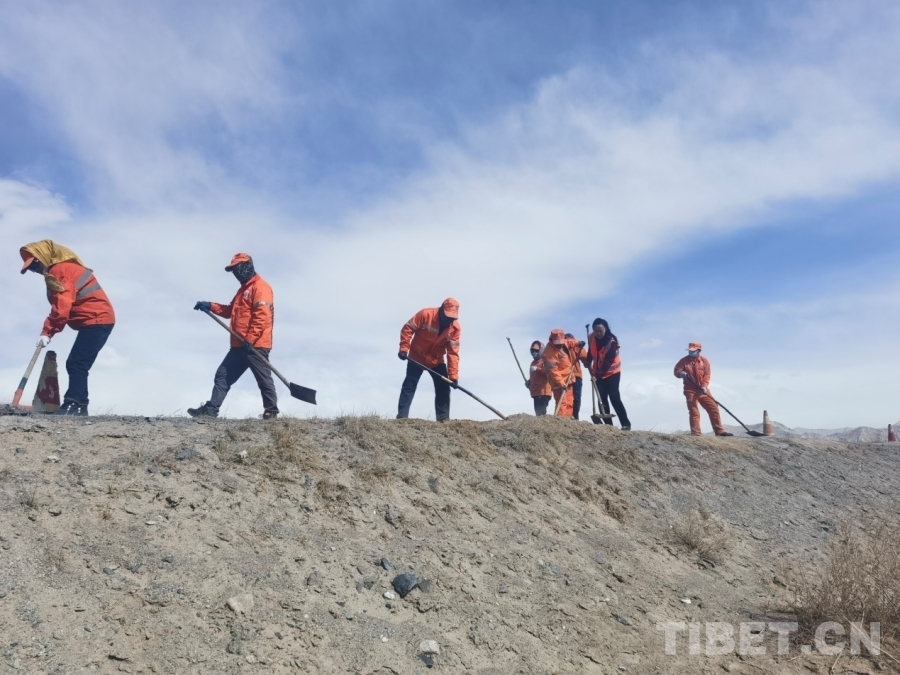 图为青藏公路109线格尔木至拉萨段养路工人在辛勤工作